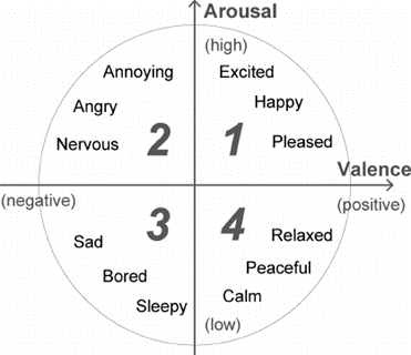 - Arousal: 감정의 격함의 정도 → 높을 수록 감정이 격해짐