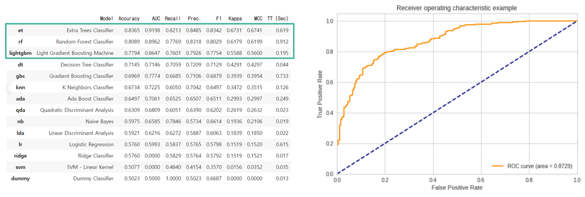 - 가장 높은 성능을 보인 3개의 모델(ExtraTreeClassifier, RandomForestClassifier, LGBMClassifier)을 ensemble