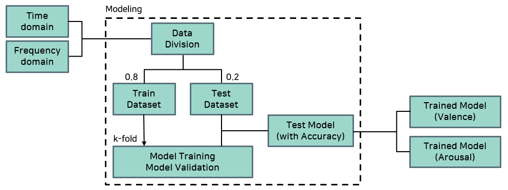 앞서 추출한 Time domain과 Frequency domain의 Feature를 이용해, Arousal/Valence 마다 High/Low를 분류하는 이진 분류 모델 생성