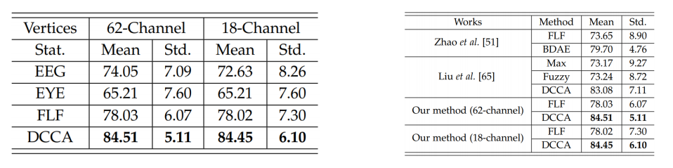 64채널을 모두 이용하고, 연구진인 제안한 DCCA 모델을 이용한 결과가 가장 높은 정확도를 보이는 것을 확인할 수 있다.