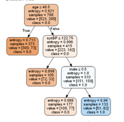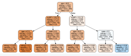 최종 모델의 Max depth = 3, Max Leaf node = 4, Min impurity Decrease = 0.09 이며, 모델 수립에 사용된 설명 Attribute는 [ Age, SysBP, Male ] 이다. 각 Attribute의 Feature Importance는 age = 0.74, sysBP = 0.15, male = 0.12 이다.