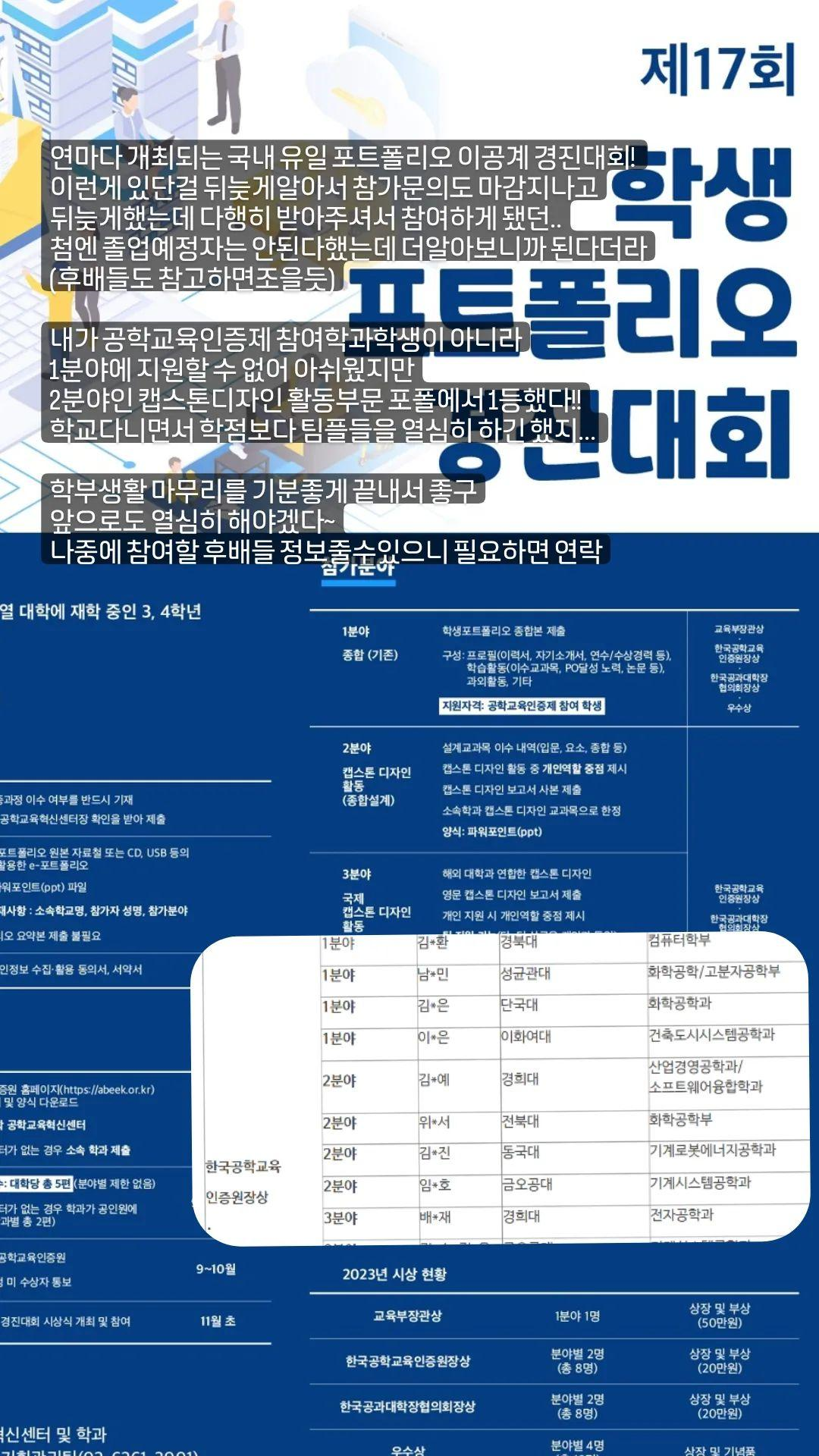아마 국내 유일한 포트폴리오 경진대회일, 한국공학교육인증원 주관 "학생 포트폴리오 경진대회" 를 발견했다. (이거 외에없는 것 같다)