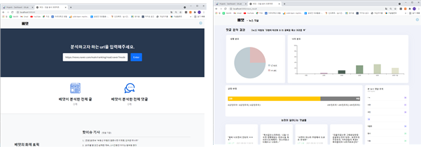 - 입력받은 url의 기사, 영화, 쇼핑몰에 대하여 해당 댓글, 리뷰 정보를 수집하여 분석 결과를 웹 화면에 출력